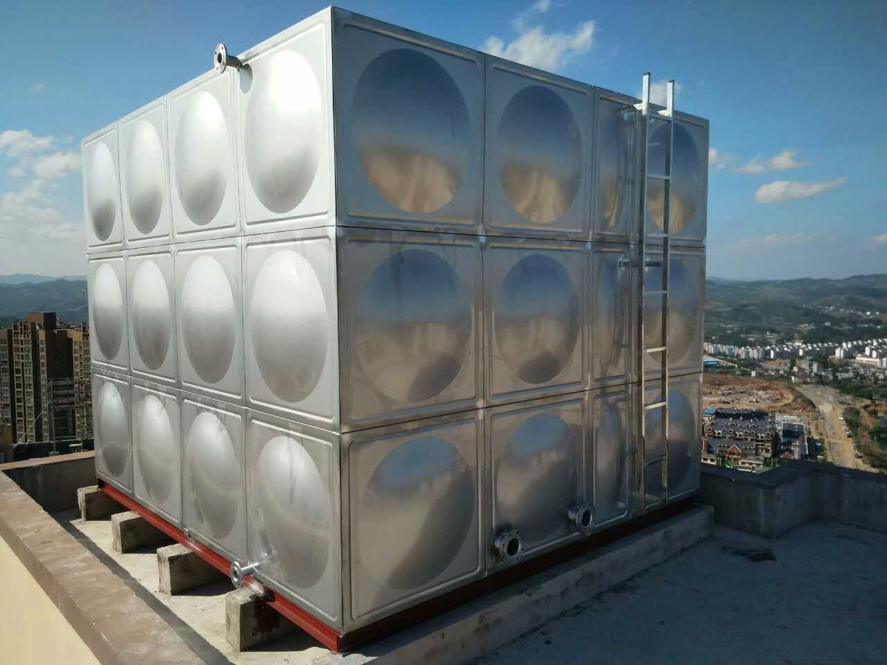 與我公司采購一臺屋頂消防水箱:4*3.5*3=42T。底板和側板均為2.0,頂板1.5mm。水箱結構牢固。